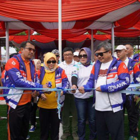 Bupati Garut Rudy Gunawan meresmikan wajah baru Lapangan Sarana Olahraga (SOR) Merdeka Kerkhof, Kabupaten Garut, Jumat (12/1/2024).
