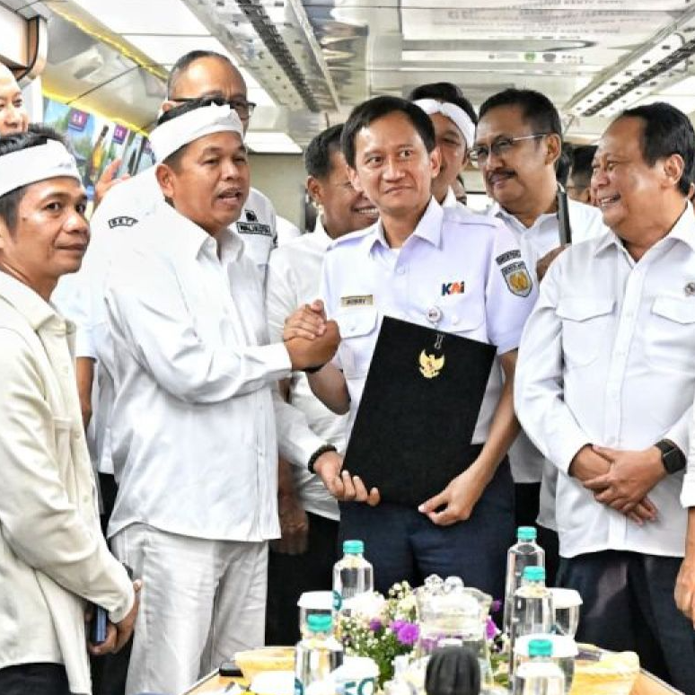 "Hari ini Pemerintah Provinsi Jawa Barat bersama seluruh bupati dan wali kota se-Jawa Barat, disaksikan oleh Pak Wamenhub, berkomitmen dengan Direktur PT KAI untuk mengembangkan perkeretaapian di Jawa Barat," kata KDM, sapaan akrab Dedi Mulyadi.